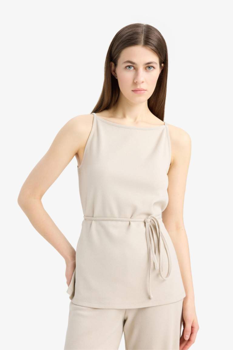 Débardeur à col bateau et ceinture Coupe régulière